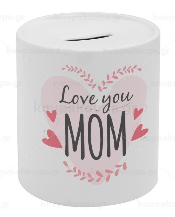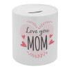 Mother's day I Love you Mom heart, Κουμπαράς πορσελάνης με τάπα