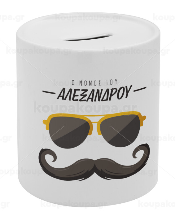 Ο νονός μου, μουστάκι με γυαλιά, Κουμπαράς πορσελάνης με τάπα