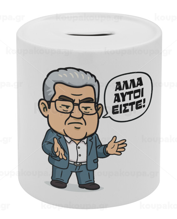 Κουτσούμπας, "Αλλά αυτοί είστε!", Κουμπαράς πορσελάνης με τάπα