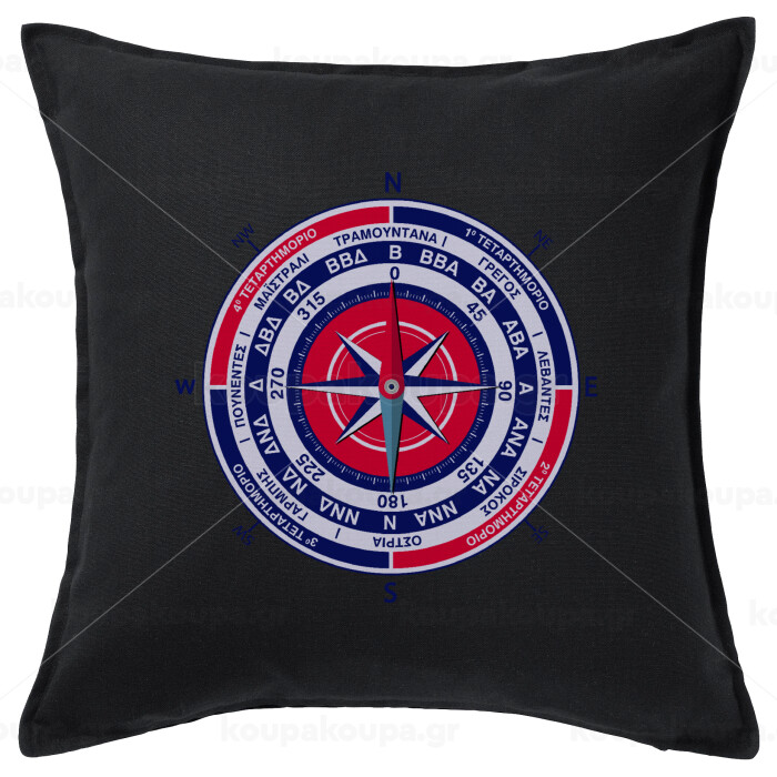 Wind compass, Sofa cushion black 50x50cm includes filling
