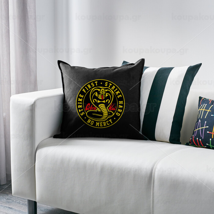 cobra kai strike first dojo, Sofa cushion black 50x50cm includes filling