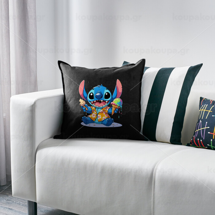 Stitch Ice cream, Sofa cushion black 50x50cm includes filling