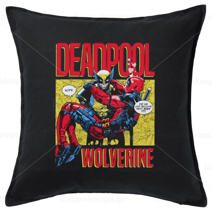Superhero Deadpool Wolverine, Sofa cushion black 50x50cm includes filling