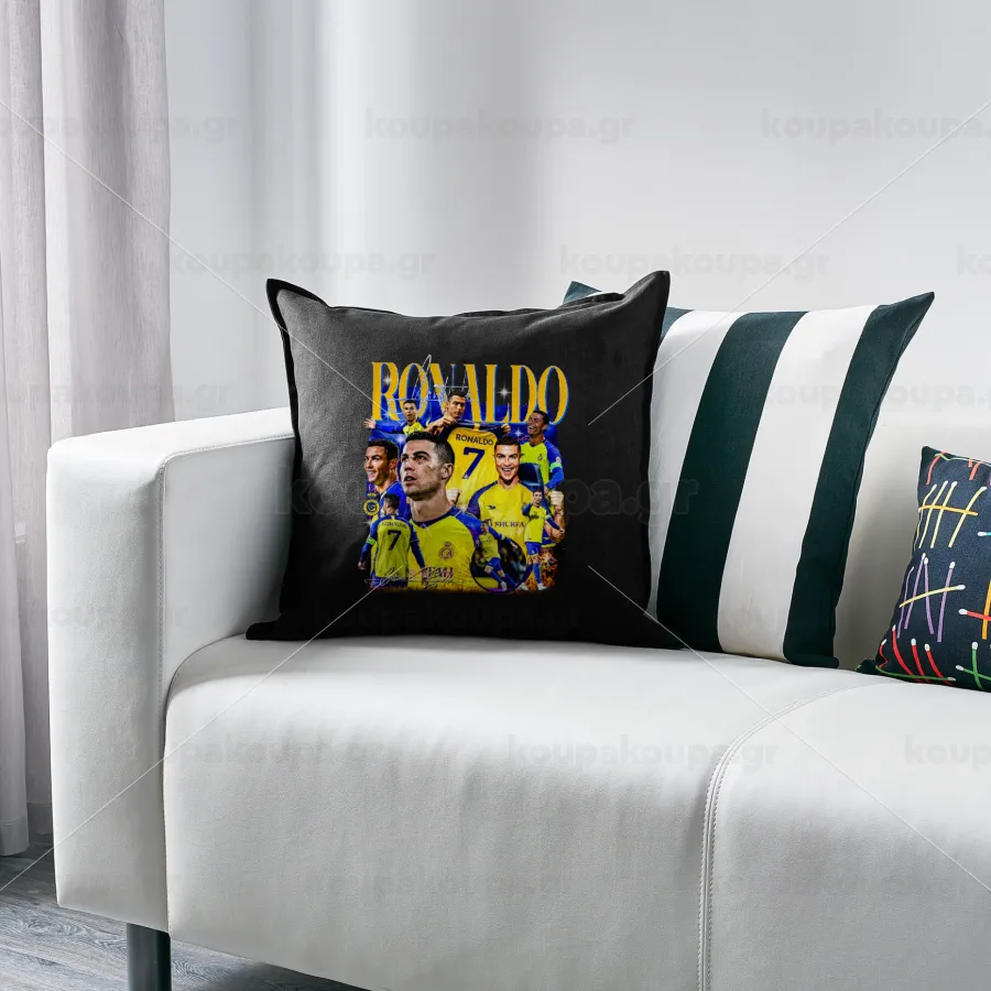 Cristiano Ronaldo Al Nassr, Sofa cushion black 50x50cm includes filling