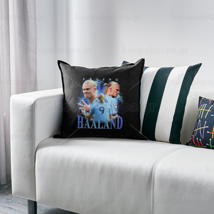 Erling Haaland, Sofa cushion black 50x50cm includes filling