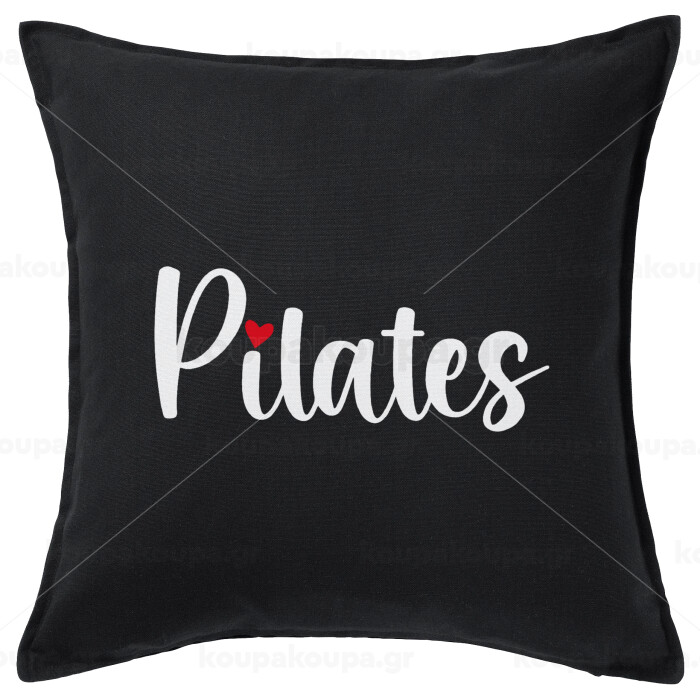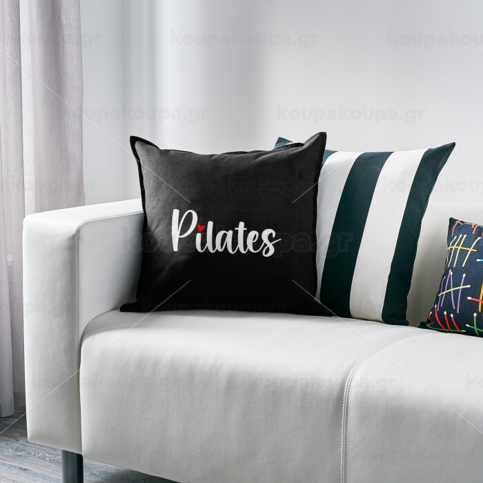 Pilates love, Sofa cushion black 50x50cm includes filling