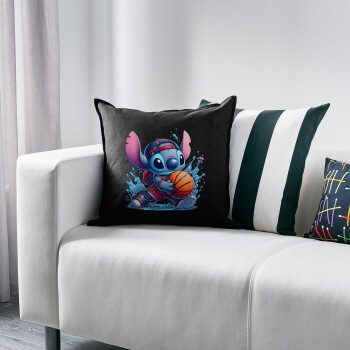Stitch Basketball, Sofa cushion black 50x50cm includes filling