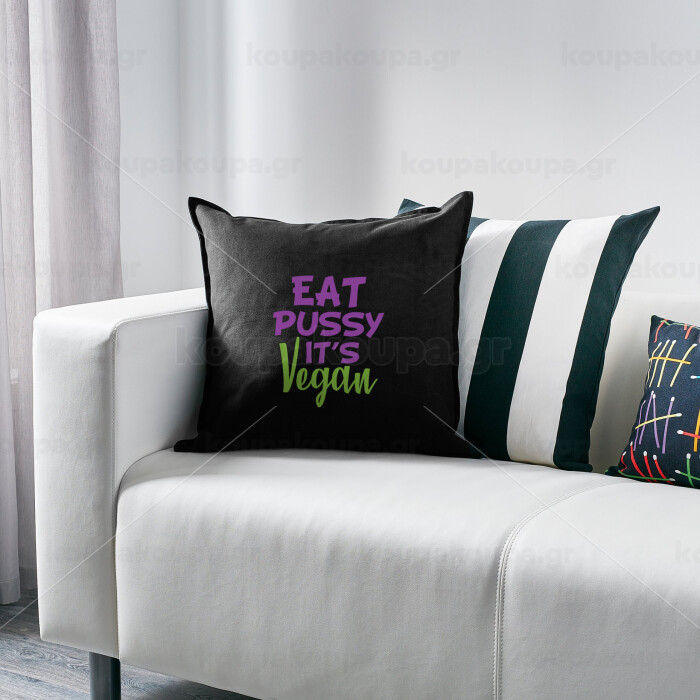 EAT pussy it's vegan, Sofa cushion black 50x50cm includes filling