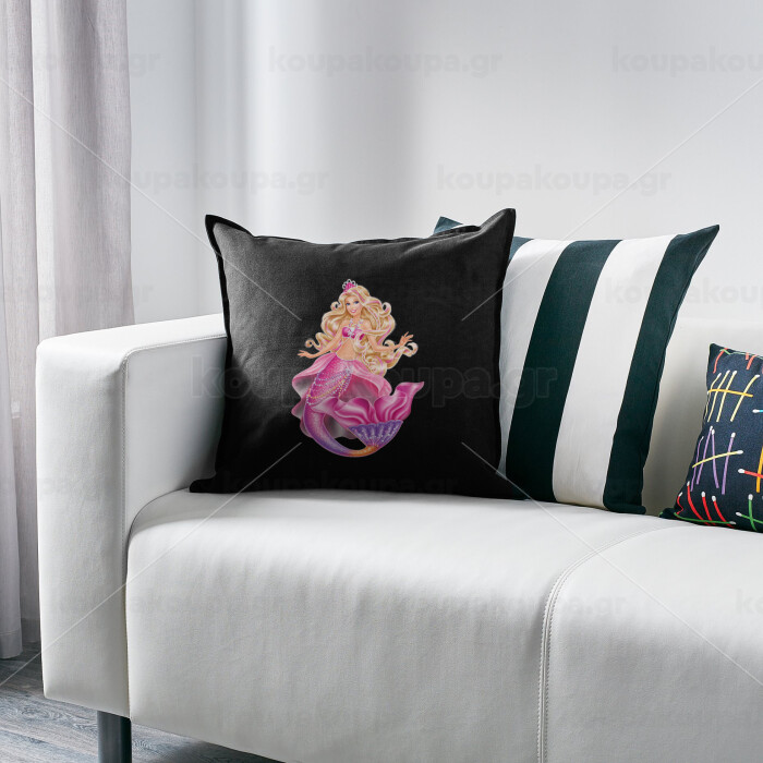 Barbie mermaid , Sofa cushion black 50x50cm includes filling