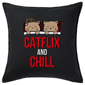 Catflix and Chill, Sofa cushion black 50x50cm includes filling