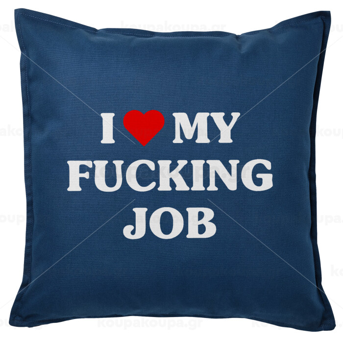 I love my fucking job, Sofa cushion Blue 50x50cm includes filling