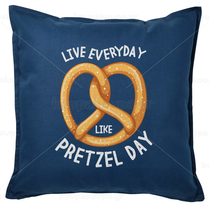 The office, Live every day like pretzel day, Sofa cushion Blue 50x50cm includes filling