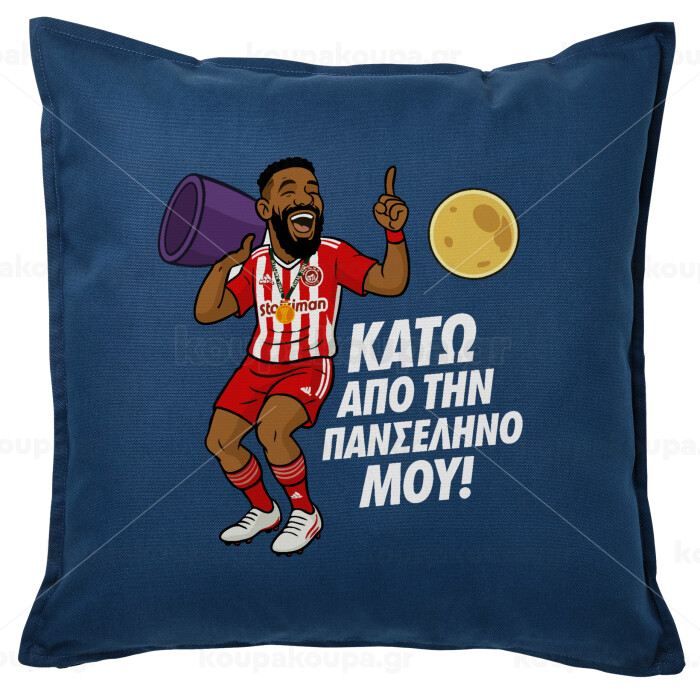 Ροντινέι, "ΚΑΤΩ ΑΠΟ ΤΗΝ ΠΑΝΣΕΛΗΝΟ ΜΟΥ!", Sofa cushion Blue 50x50cm includes filling