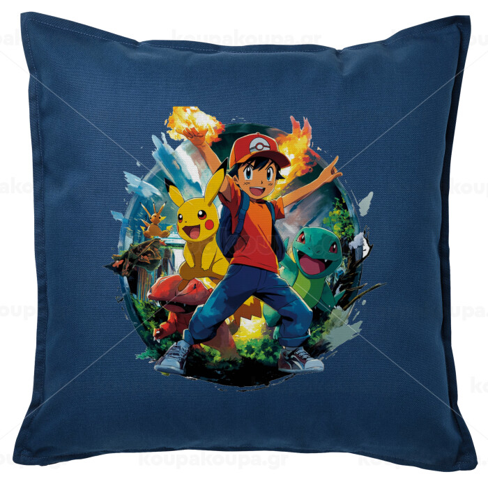 Ash Ketchum & Pikachu, Sofa cushion Blue 50x50cm includes filling