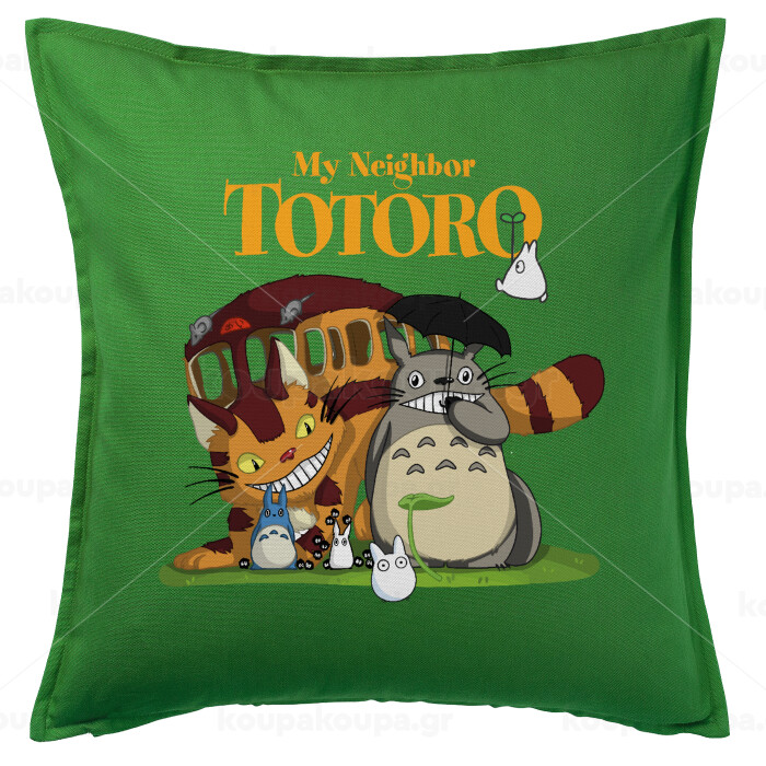 Totoro and Cat, Sofa cushion Green 50x50cm includes filling