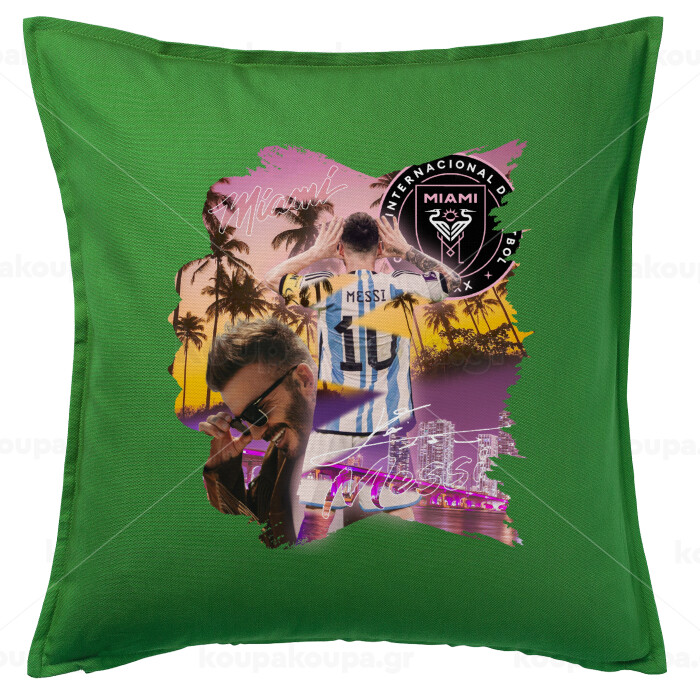 Lionel Messi Miami, Sofa cushion Green 50x50cm includes filling