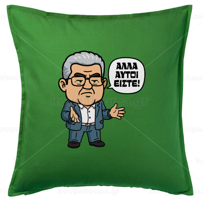 Κουτσούμπας, "Αλλά αυτοί είστε!", Sofa cushion Green 50x50cm includes filling