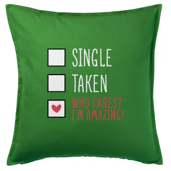 Single, Taken, Who cares i'm amazing, Sofa cushion Green 50x50cm includes filling