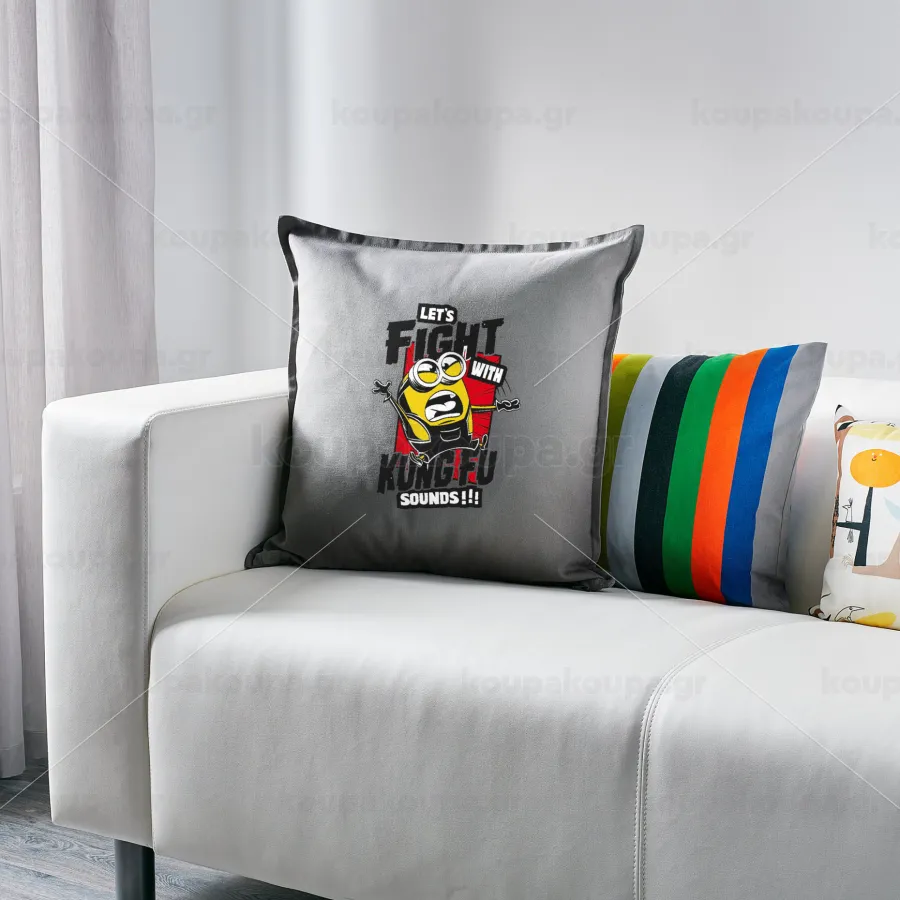 Minions Let's fight with kung fu sounds, Sofa cushion Grey 50x50cm includes filling