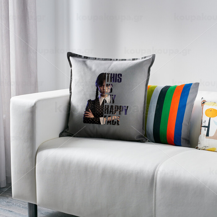 Wednesday, This is my happy face, Sofa cushion Grey 50x50cm includes filling