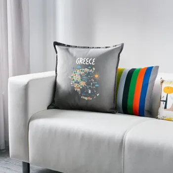 Greek map, Sofa cushion Grey 50x50cm includes filling