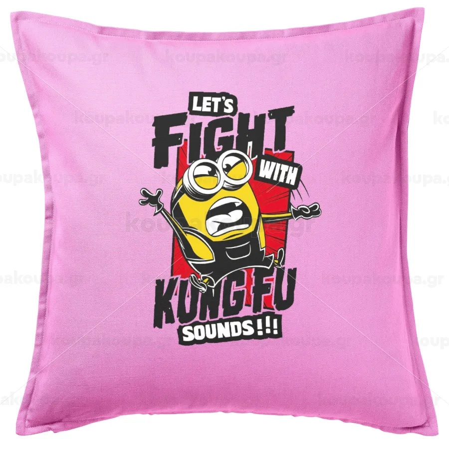Minions Let's fight with kung fu sounds, Sofa cushion Pink 50x50cm includes filling