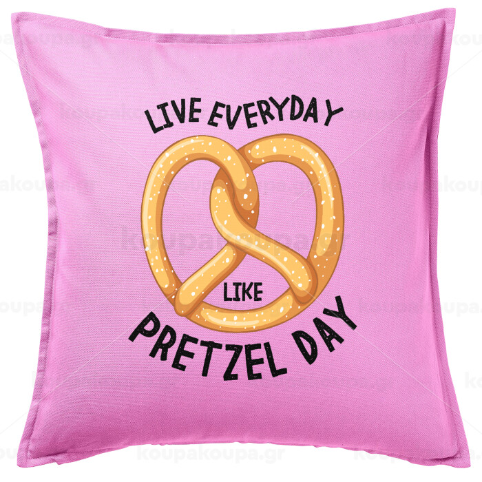 The office, Live every day like pretzel day, Sofa cushion Pink 50x50cm includes filling