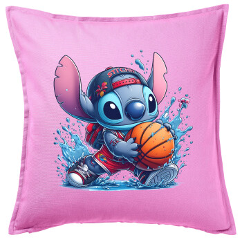 Stitch Basketball, Sofa cushion Pink 50x50cm includes filling