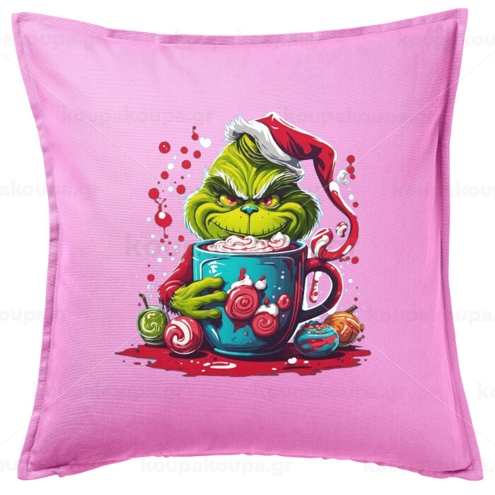 Giggling Grinchy Galore, Sofa cushion Pink 50x50cm includes filling