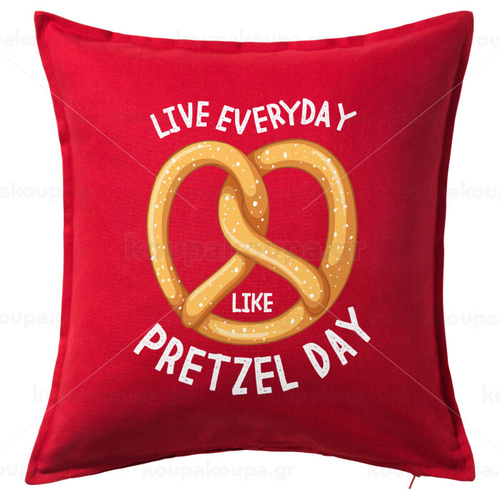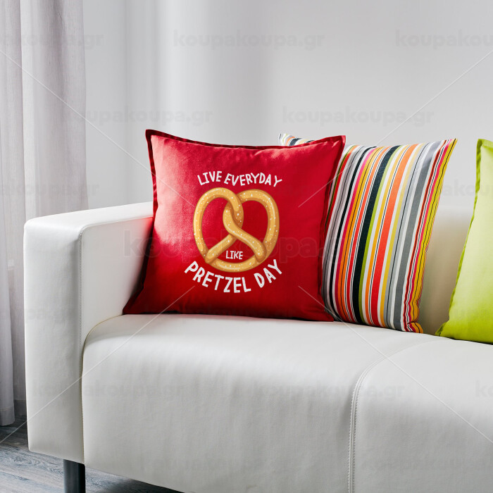 The office, Live every day like pretzel day, Sofa cushion RED 50x50cm includes filling