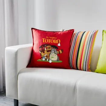 Totoro and Cat, Sofa cushion RED 50x50cm includes filling