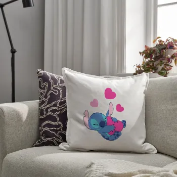 Lilo & Stitch hugs and hearts, Sofa cushion White 50x50cm includes filling