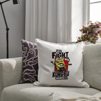 Minions Let's fight with kung fu sounds, Sofa cushion White 50x50cm includes filling