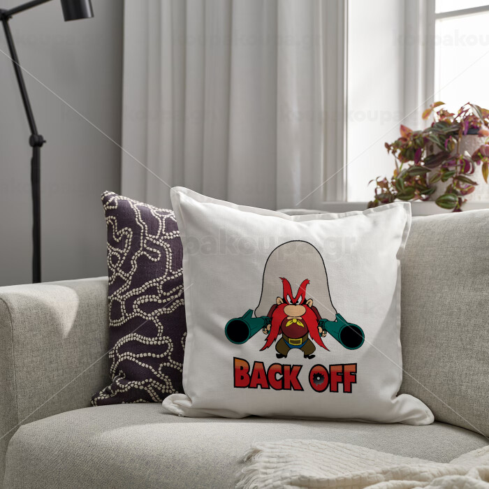 Yosemite Sam Back OFF, Sofa cushion White 50x50cm includes filling