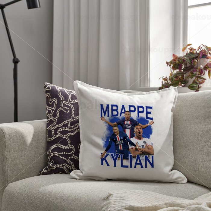 Kylian Mbappé, Sofa cushion White 50x50cm includes filling