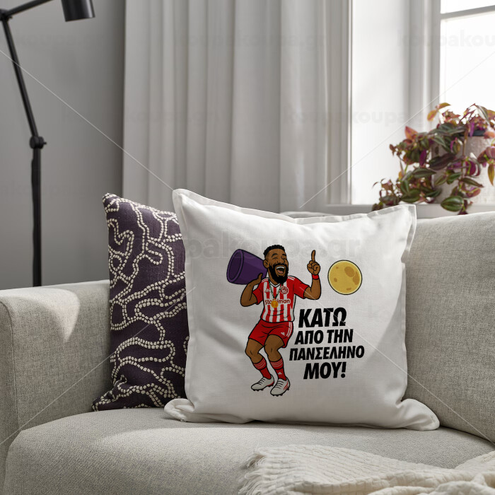 Ροντινέι, "ΚΑΤΩ ΑΠΟ ΤΗΝ ΠΑΝΣΕΛΗΝΟ ΜΟΥ!", Sofa cushion White 50x50cm includes filling