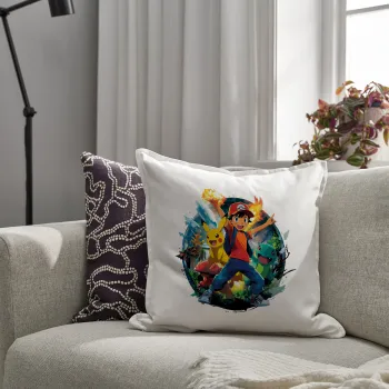 Ash Ketchum & Pikachu, Sofa cushion White 50x50cm includes filling