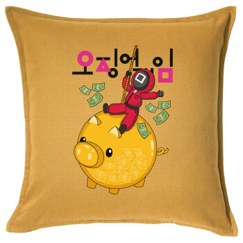 Squid game money pig, Sofa cushion YELLOW 50x50cm includes filling