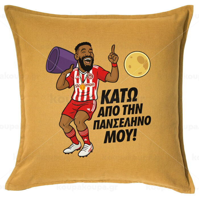 Ροντινέι, "ΚΑΤΩ ΑΠΟ ΤΗΝ ΠΑΝΣΕΛΗΝΟ ΜΟΥ!", Sofa cushion YELLOW 50x50cm includes filling