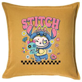 Labubu Stitch, Sofa cushion YELLOW 50x50cm includes filling
