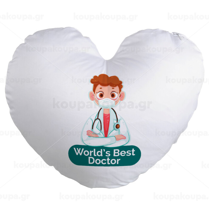 World's Best Doctor, Μαξιλάρι καναπέ καρδιά 40x40cm περιέχεται το γέμισμα