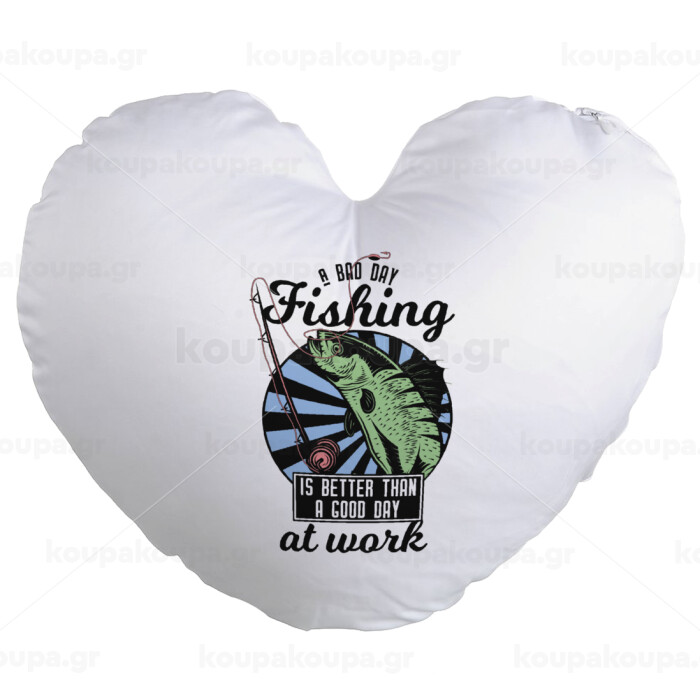 A bad day FISHING is better than a good day at work, Μαξιλάρι καναπέ καρδιά 40x40cm περιέχεται το γέμισμα