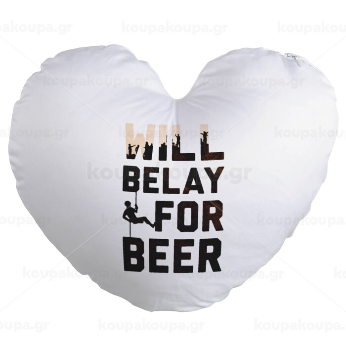Will Belay For Beer, Μαξιλάρι καναπέ καρδιά 40x40cm περιέχεται το γέμισμα
