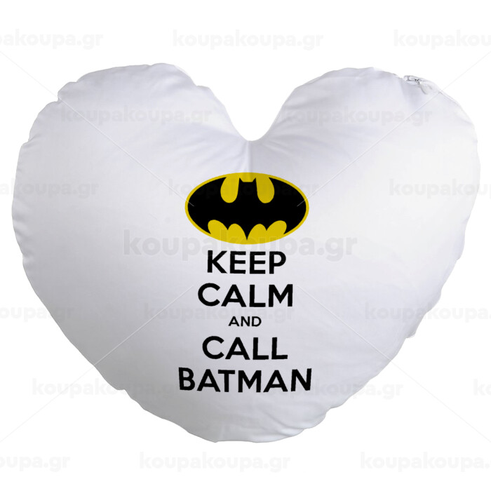KEEP CALM & Call BATMAN, Μαξιλάρι καναπέ καρδιά 40x40cm περιέχεται το γέμισμα