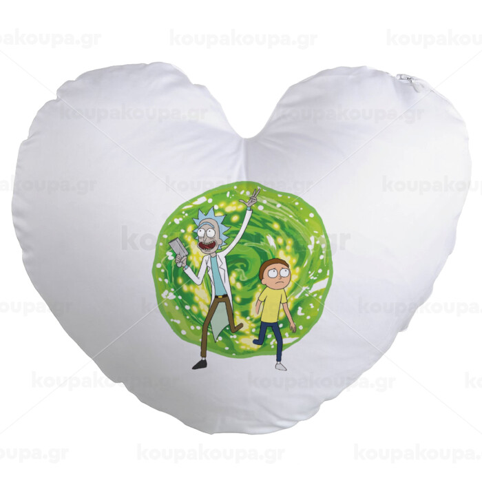 Rick and Morty, Μαξιλάρι καναπέ καρδιά 40x40cm περιέχεται το γέμισμα