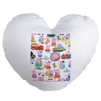 Peppa pig Characters, Μαξιλάρι καναπέ καρδιά 40x40cm περιέχεται το γέμισμα