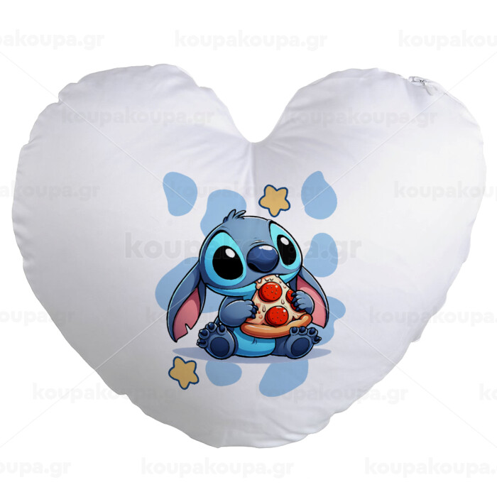 Stitch Pizza, Μαξιλάρι καναπέ καρδιά 40x40cm περιέχεται το γέμισμα