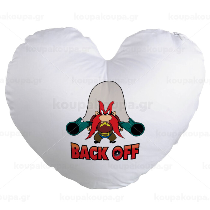 Yosemite Sam Back OFF, Μαξιλάρι καναπέ καρδιά 40x40cm περιέχεται το γέμισμα