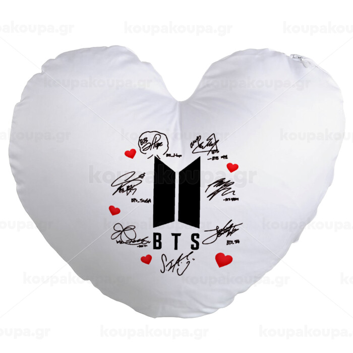 BTS signs, Μαξιλάρι καναπέ καρδιά 40x40cm περιέχεται το γέμισμα