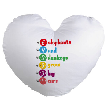 Elephants And Donkeys Grow Big Ears, Μαξιλάρι καναπέ καρδιά 40x40cm περιέχεται το γέμισμα